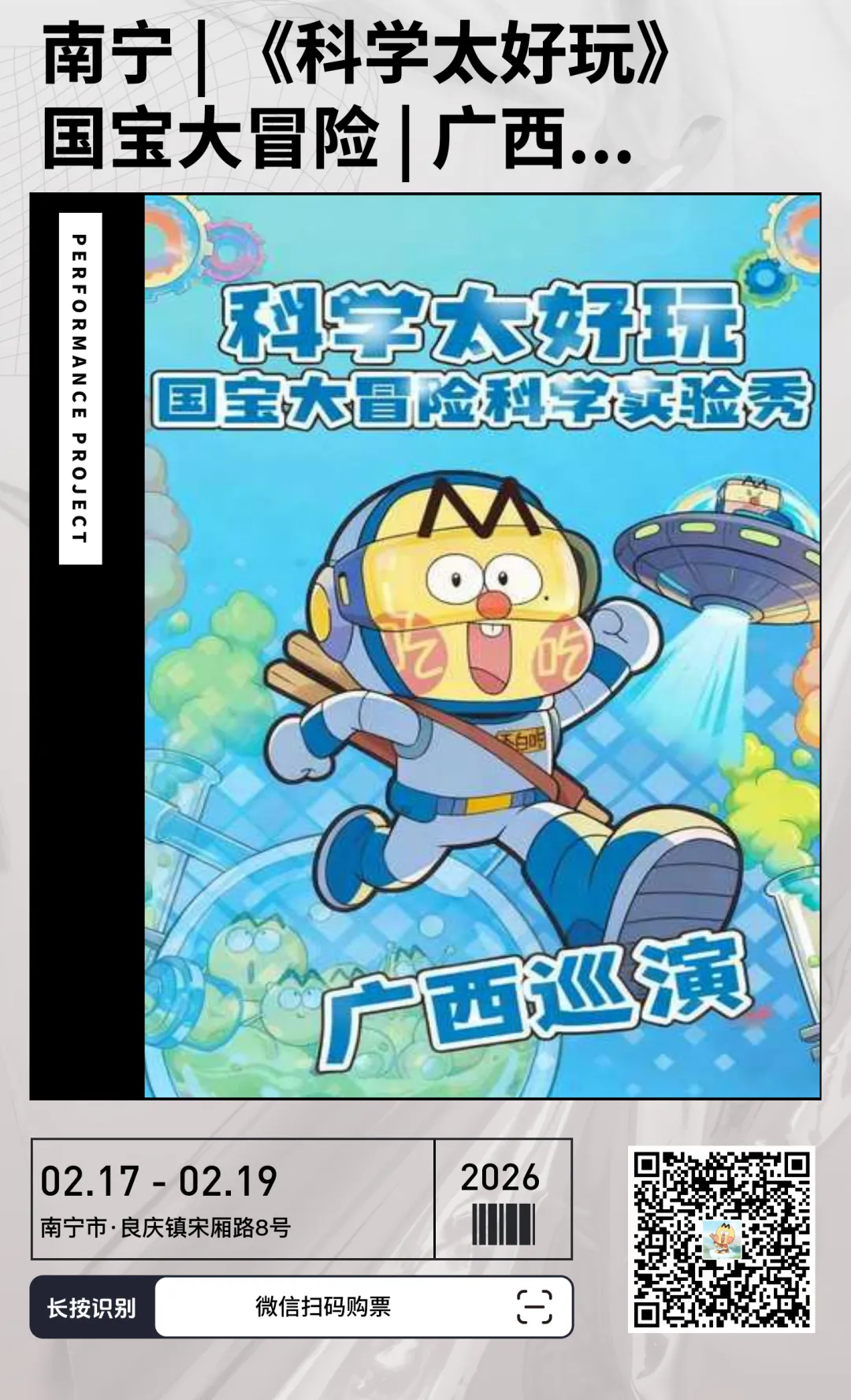 >南宁|不白吃《科学太好玩》之国宝大冒险科学实验秀2月17-19日广西规划馆上演,早鸟票优惠中!