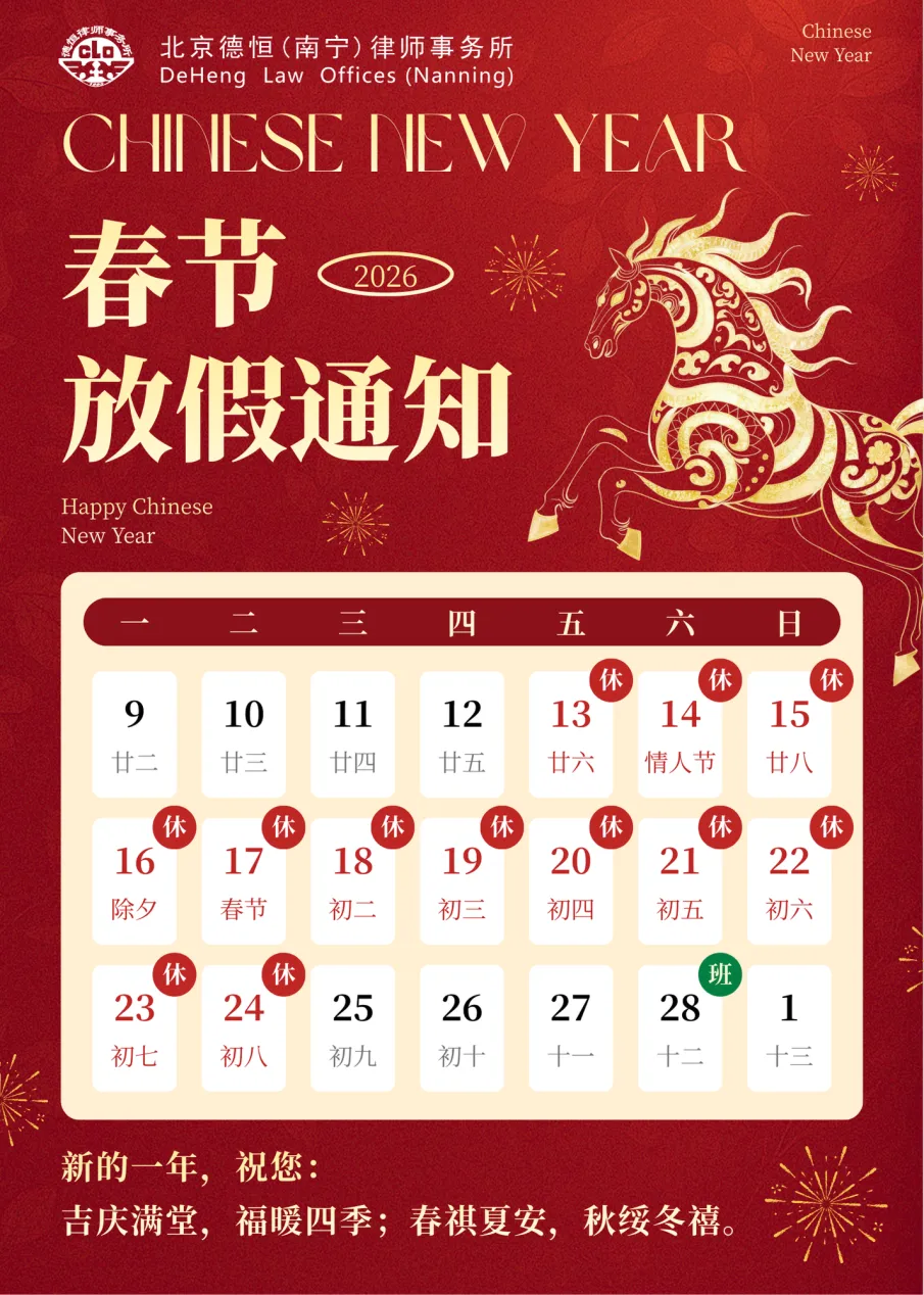 新春嘉平 长乐未央丨北京德恒(南宁)律师事务所2026年春节放假通知