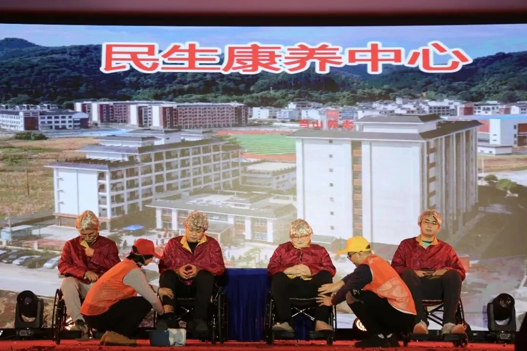 民生服务集团小品《养老院》,勾勒四位老人在养老院老友闲谈、赛歌健身,乐享晚年的温情点滴。