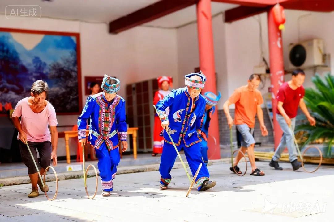 趣味夹杯子、铁环滚滚、拓福迎春