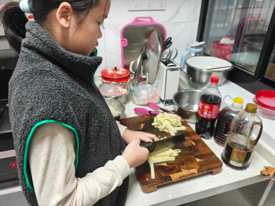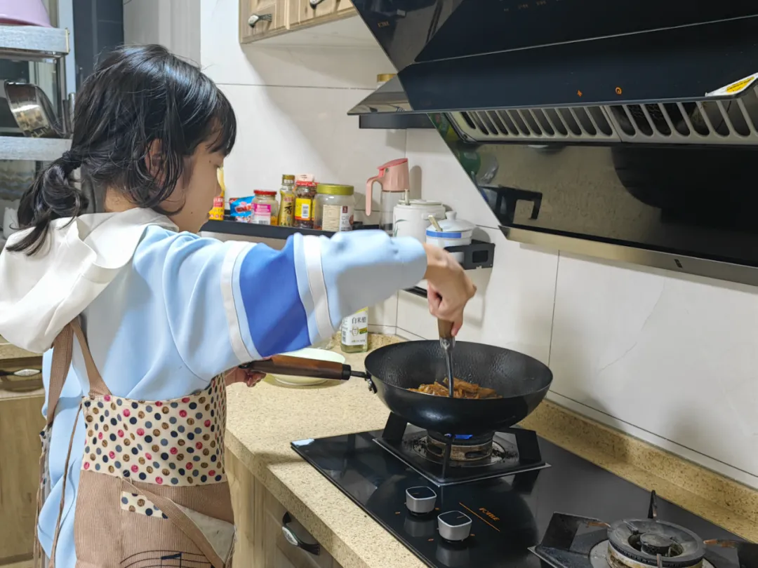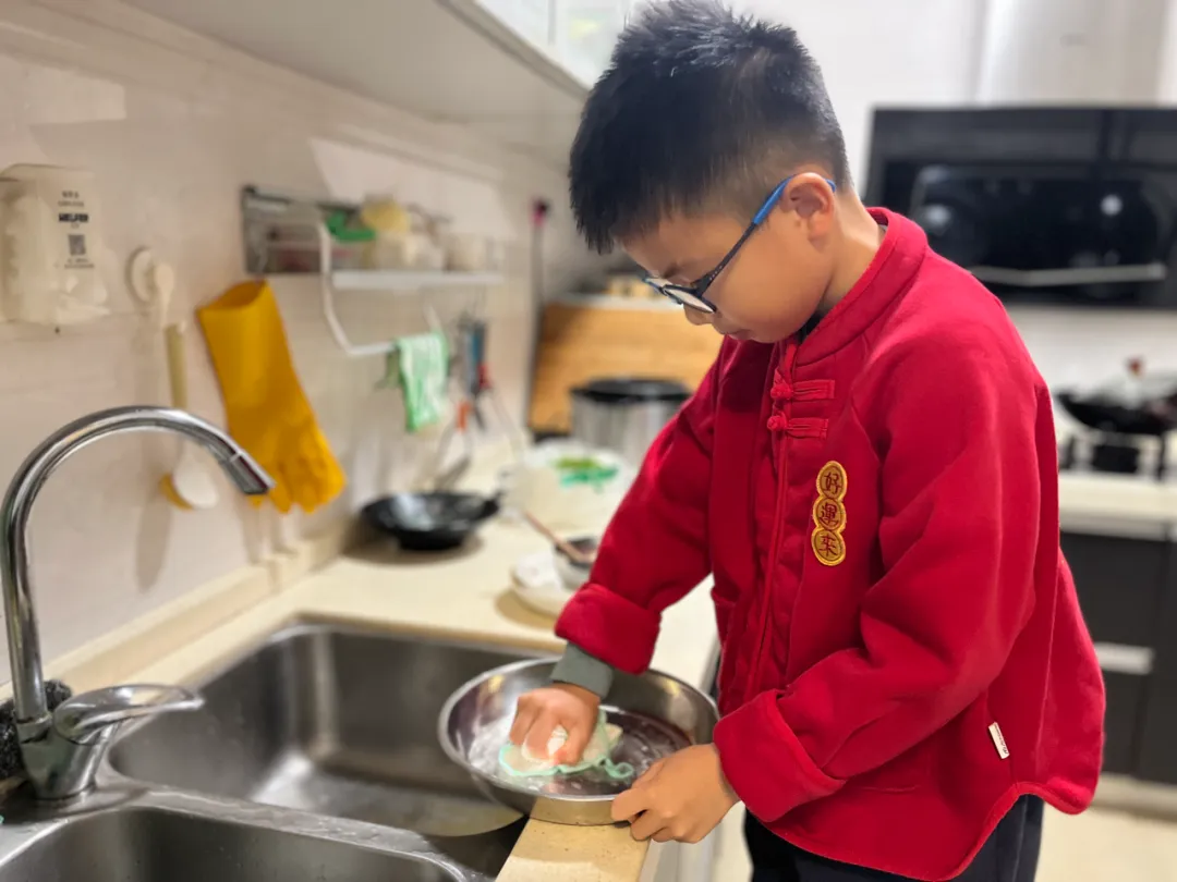 节日餐桌的温馨时刻,少不了月湾学子的身影。大家结合“悦小厨”劳动课程所学,化身小厨师,从食材清洗、切配到烹饪,独立完成一道家常菜或年味特色菜,用亲手烹制的美味为团聚时光添彩;还有“家务小能手”主动布置餐桌、摆放碗筷,饭后收拾清理、清洗餐具,用行动传递孝心与担当。