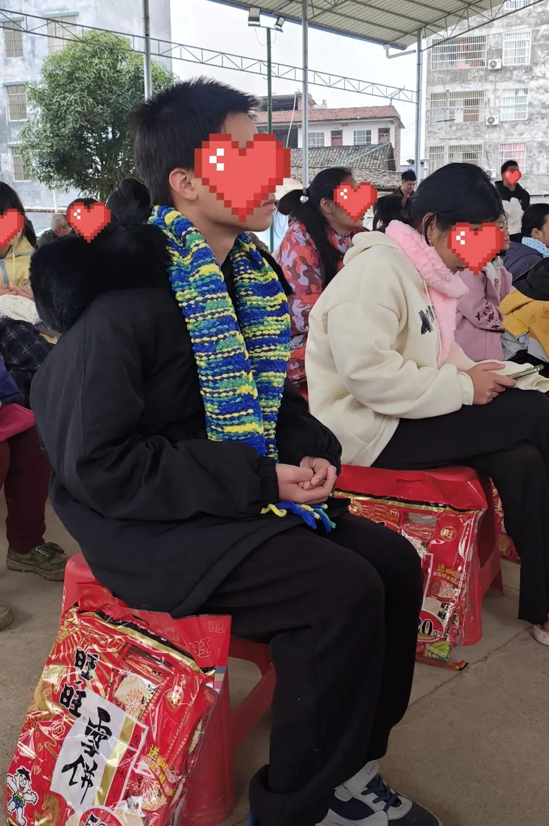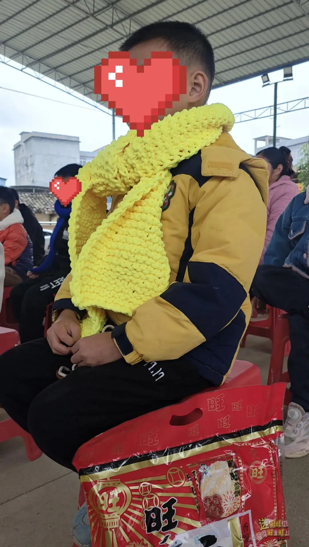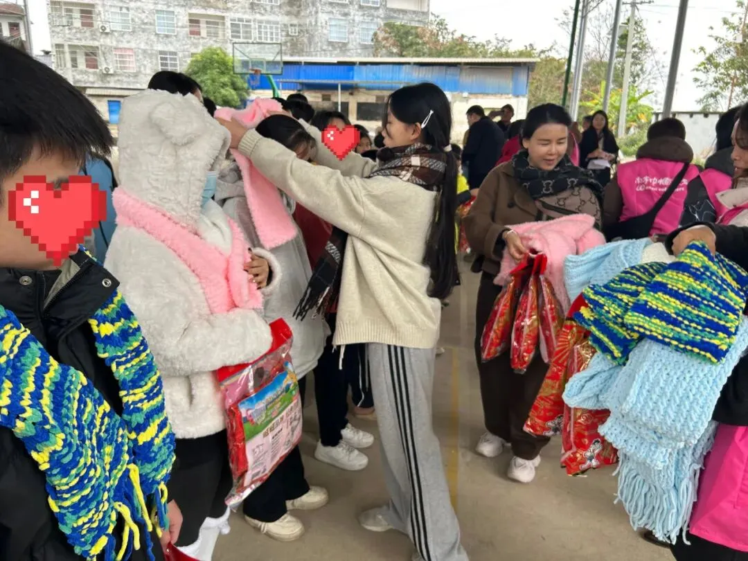 围上围巾,孩子们脸上绽放出