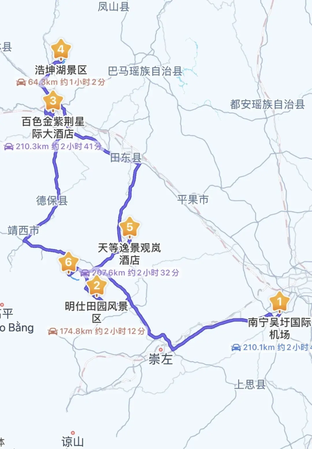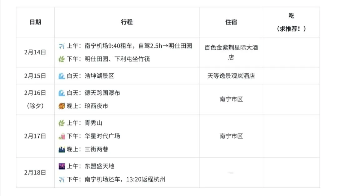 杭州→南宁、崇左、百色5天4晚租车自驾游攻略(求美食推荐!)