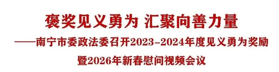 会议强调,全市各级各部门要深入学习贯彻习近平总书记关于见义勇为工作的重要指示精神,全面落实党中央、自治区党委和市委关于平安建设、见义勇为工作的部署要求,把组织的关心厚爱转化为推动工作的实际行动,奋力开创新时代南宁市见义勇为事业高质量发展新局面。要进一步健全完善“党委领导、政府负责、政法协调、部门协同、社会参与”的工作格局,各县(市、区)党委政法委要强化统筹协调,各相关单位要抓实权益保障,市见义勇为基金会要深化机制创新,切实为见义勇为人员排忧解难。要持续深化见义勇为精神宣传弘扬,注重挖掘基层一线见义勇为先进事迹,充分发挥媒体传播作用和表彰奖励激励效应,引导广大群众树立正确价值导向、涵养高尚道德情操,让见义勇为成为全社会的自觉行动。