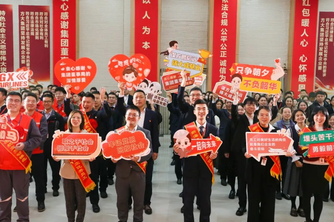 新海航北部湾航空党委书记张立超在红包发放仪式现场致辞时表示,红包是辽宁方大集团董事局给予全体奋斗者的一份额外关怀与厚爱,它承载着对大家过去一年贡献的高度认可,更寄托着对未来继续并肩前行的深切期盼。这份心意,正是“符合对全体员工有利”最生动、最温暖的体现,是一封饱含深情的“感谢信”,也是一封凝聚共识、面向未来的“动员令”。希望全体干部员工将今天的喜悦与感恩,转化为明日奋进的动力,不辜负辽宁方大集团董事局的关怀信任,以“功成必定有我”的担当,立足岗位、携手并肩,共同推动企业行稳致远,共谱下一个黄金十年的崭新篇章!