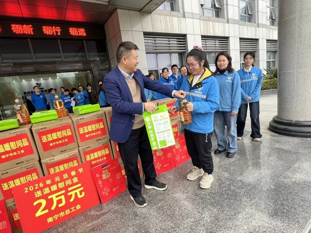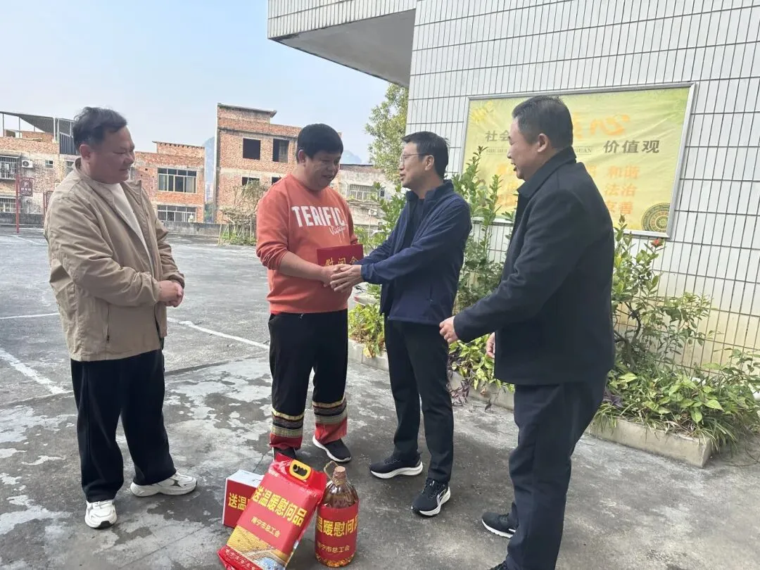 为贯彻落实党的二十届四中全会关于切实抓好民生保障的相关精神,根据全国总工会、自治区总工会的总体部署,南宁市总工会组成7个慰问组深入基层一线开展2026年元旦春节送温暖行动,向全市广大职工的辛勤付出和积极贡献,致以诚挚问候和新春祝福。