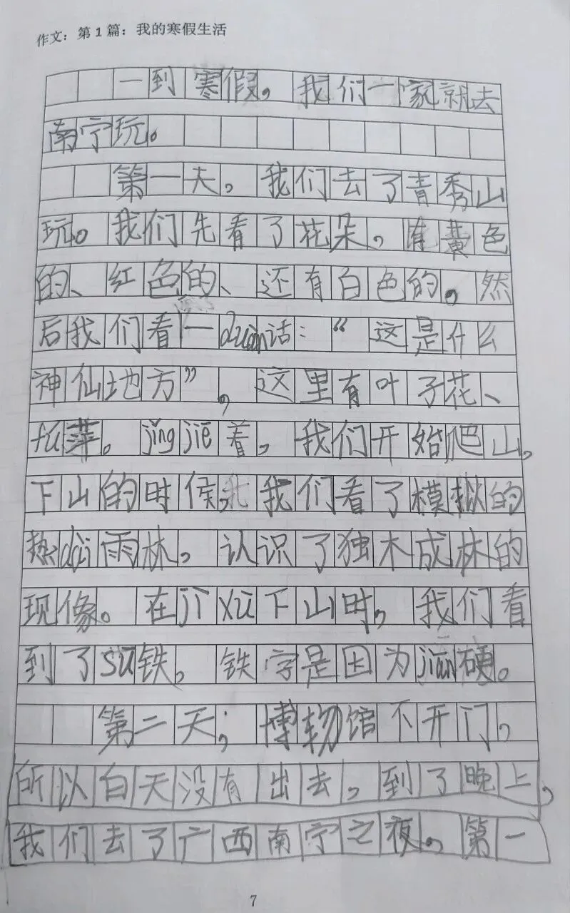 这次寒假南宁之旅,我不仅欣赏了美景、玩了有趣的游戏,还学到了历史、地理、工艺等好多知识,这真是一段充实又难忘的假期呀!