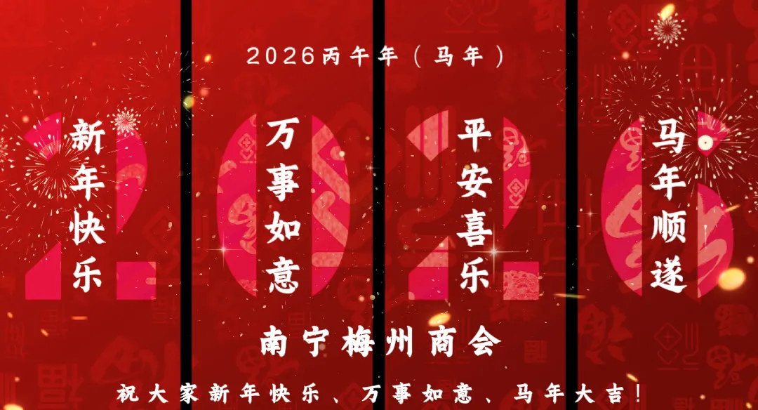 岁序更替,华章日新。值此2026农历马年新春佳节来临之际,南宁梅州商会向全体会员、乡贤,向长期关心支持商会发展的各级领导、各界朋友,以及广大在邕梅籍乡亲,致以最诚挚的新春祝福和美好祝愿!