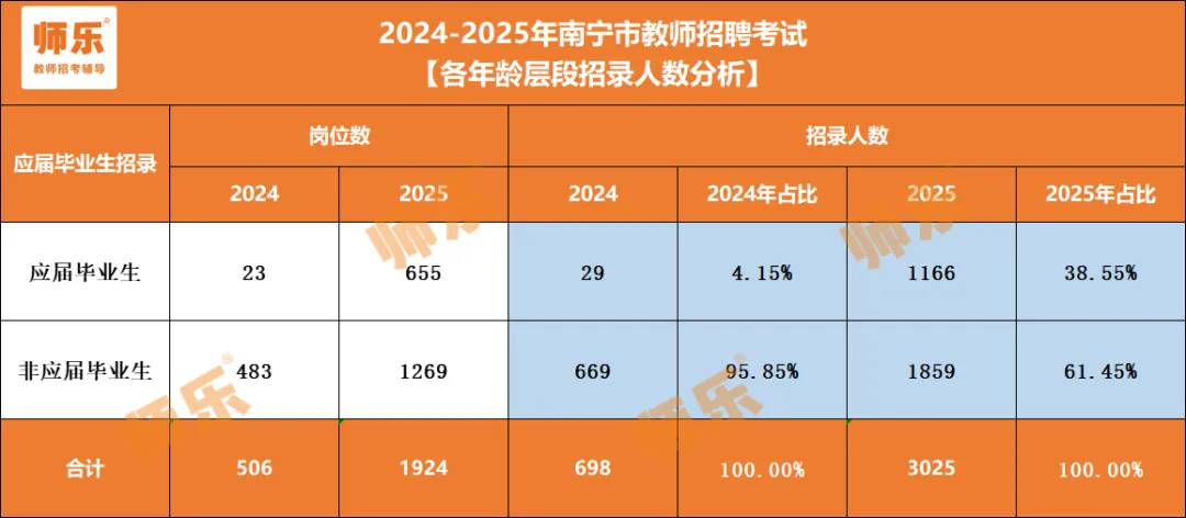 2025年南宁市教师招聘回归统招后,限应届生可报岗位剧增。招聘人数1166人,占总人数38.55%。较去年增长34.1%。南宁城区教师编制岗一般不参加双选会校招,想上岸的应届生要抓住统招机会!
