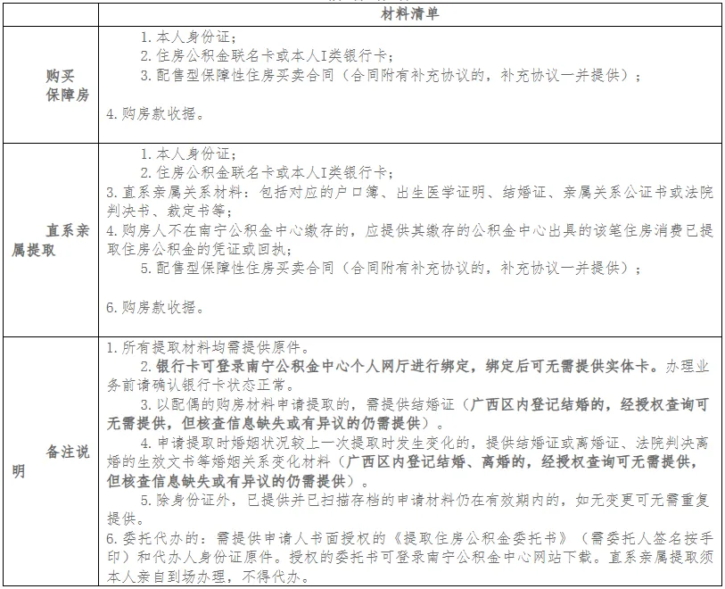 一、购买南宁市配售型保障性住房(以下简称保障房)申请提取本人住房公积金。