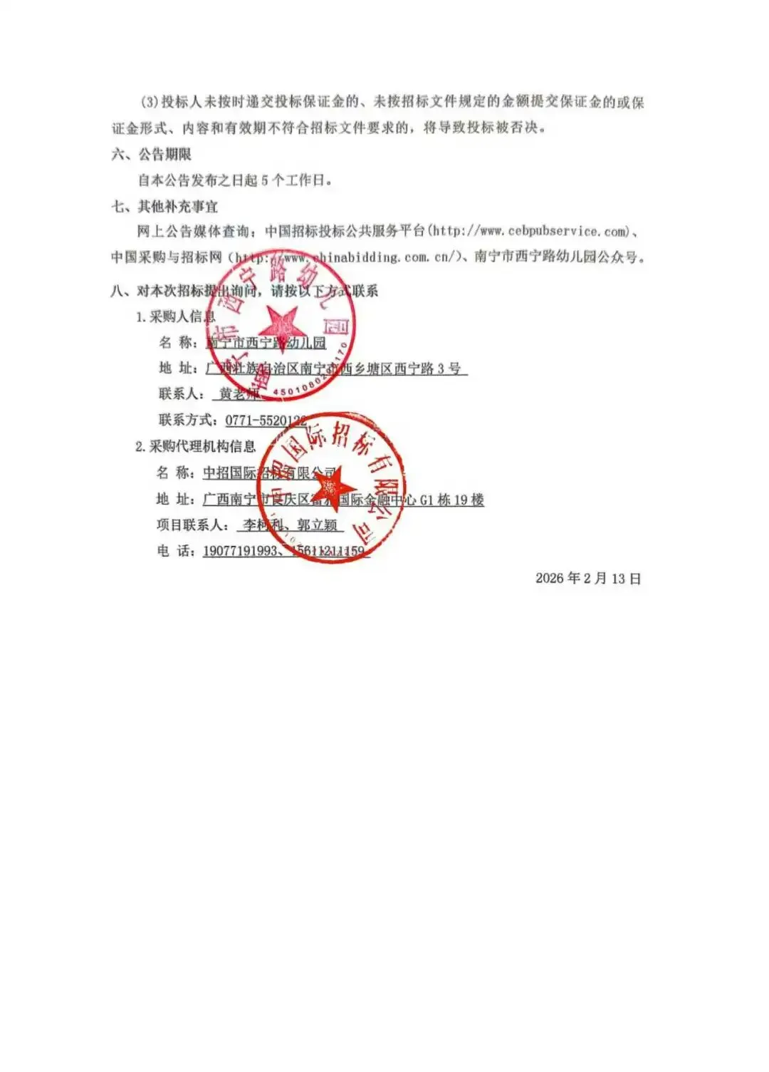 >南宁市西宁路幼儿园2026年食堂食材配送及供应链管理服务采购项目招标公告