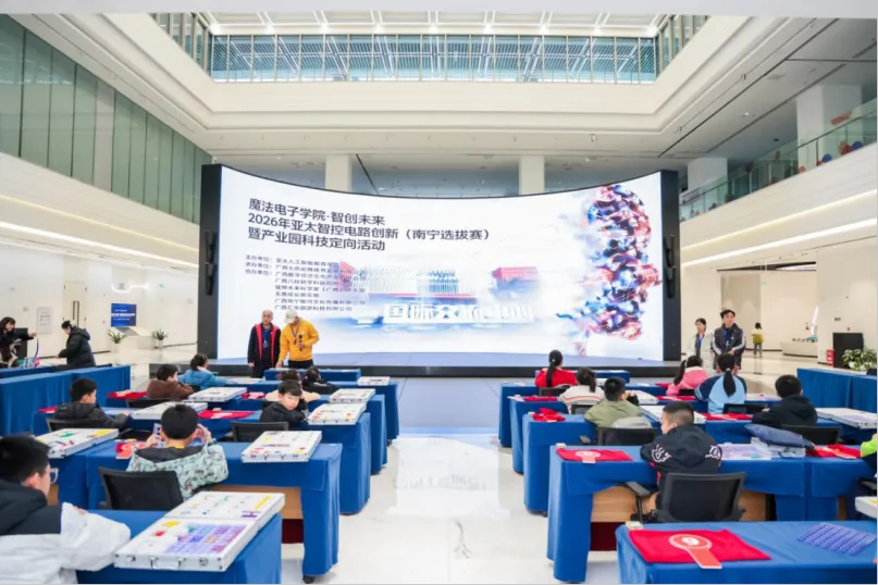 近日,2026年亚太智控电路创新大赛(南宁选拔赛)暨产业园科技定向活动在中国—东盟数字经济产业园隆重启幕。此次活动以“魔法电子学院 智创未来”为主题,将专业科创竞赛与趣味科技体验有机结合,为区域数字科技教育创新注入强劲动能,也为青少年搭建起探索前沿、锤炼本领、交流共进的重要平台。