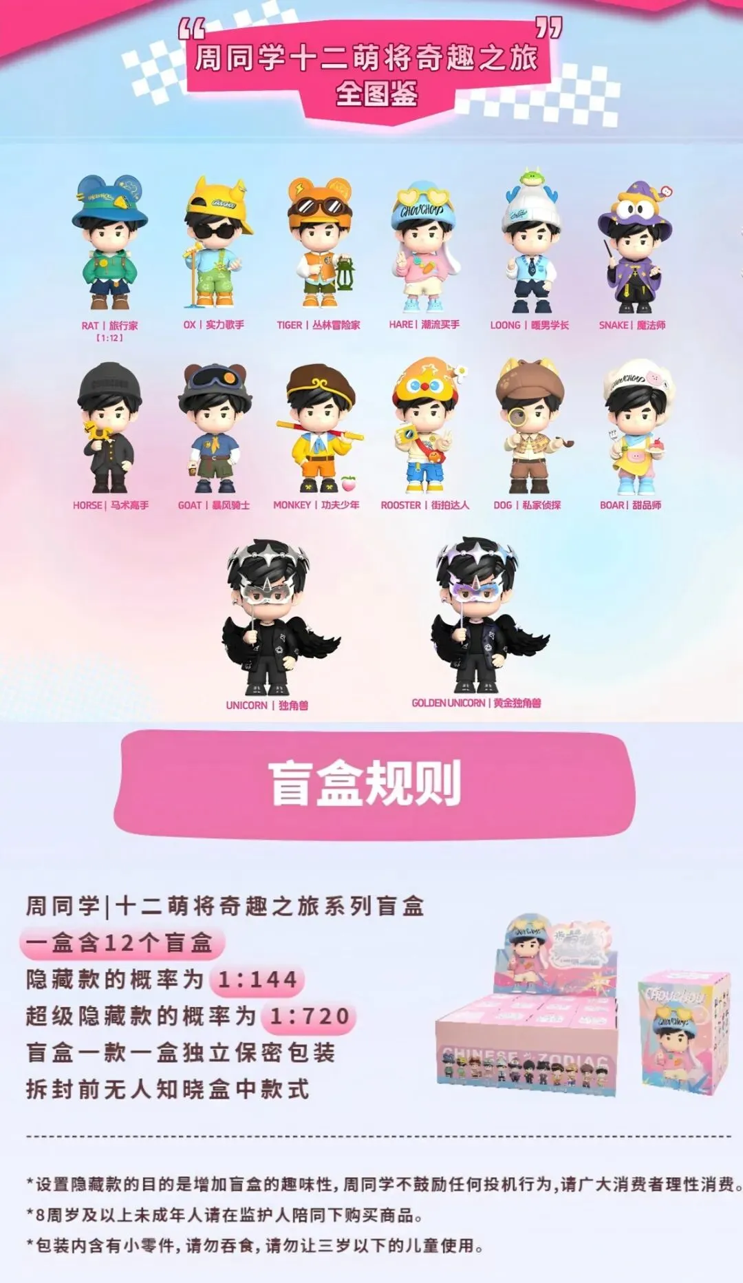 现场新增周同学十二萌将盲盒场贩专区!每个盲盒内含专属中国邮政彩色邮资戳明信片身份卡!大家能开中自己的生肖吗?现场开盲盒能不能开中超级隐藏金角角的独角兽呢?