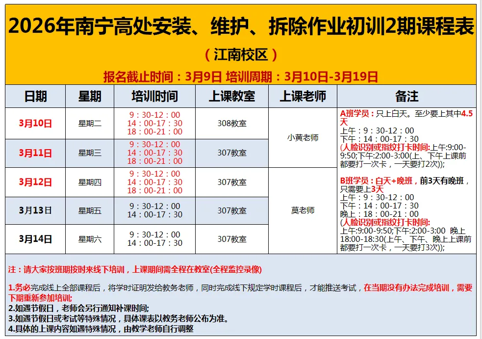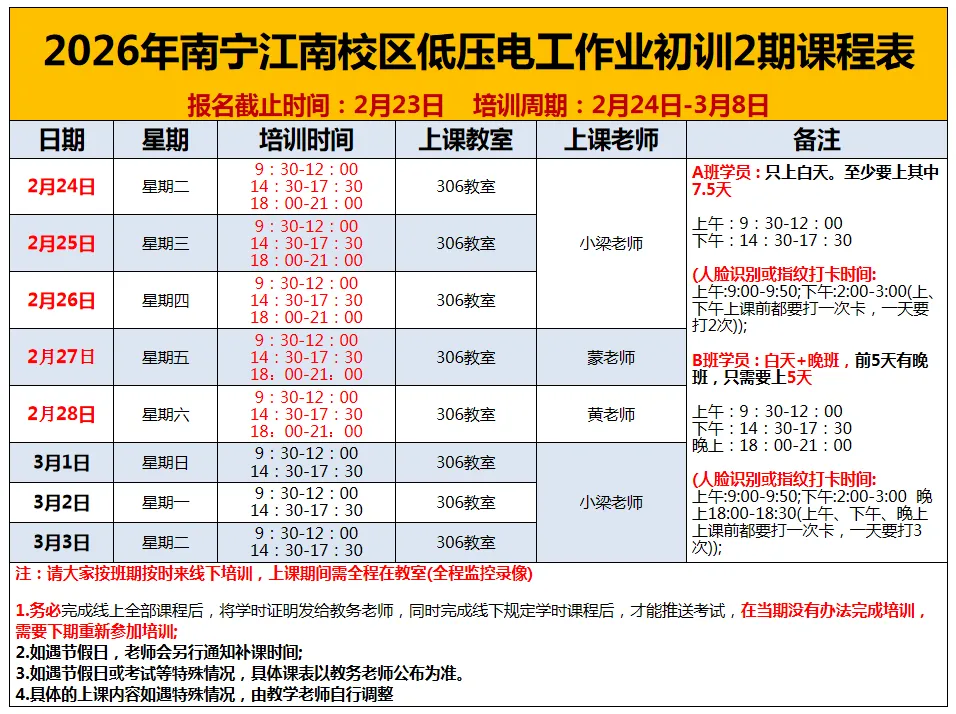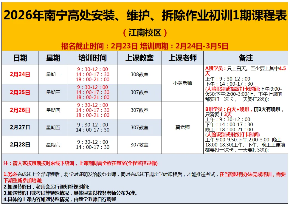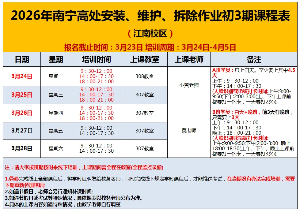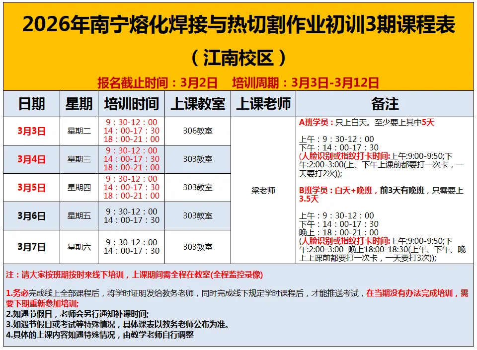 南宁江南区关于2-3月举办特种作业低压电工、焊工、高处作业操作证培训班,具体事项通知如下