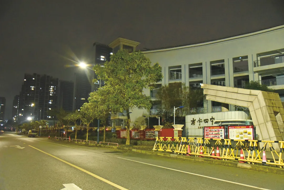 南宁四中(五象凤凰校区)校门外区域路灯经过维修后变得很明亮。记者刘增璇 摄