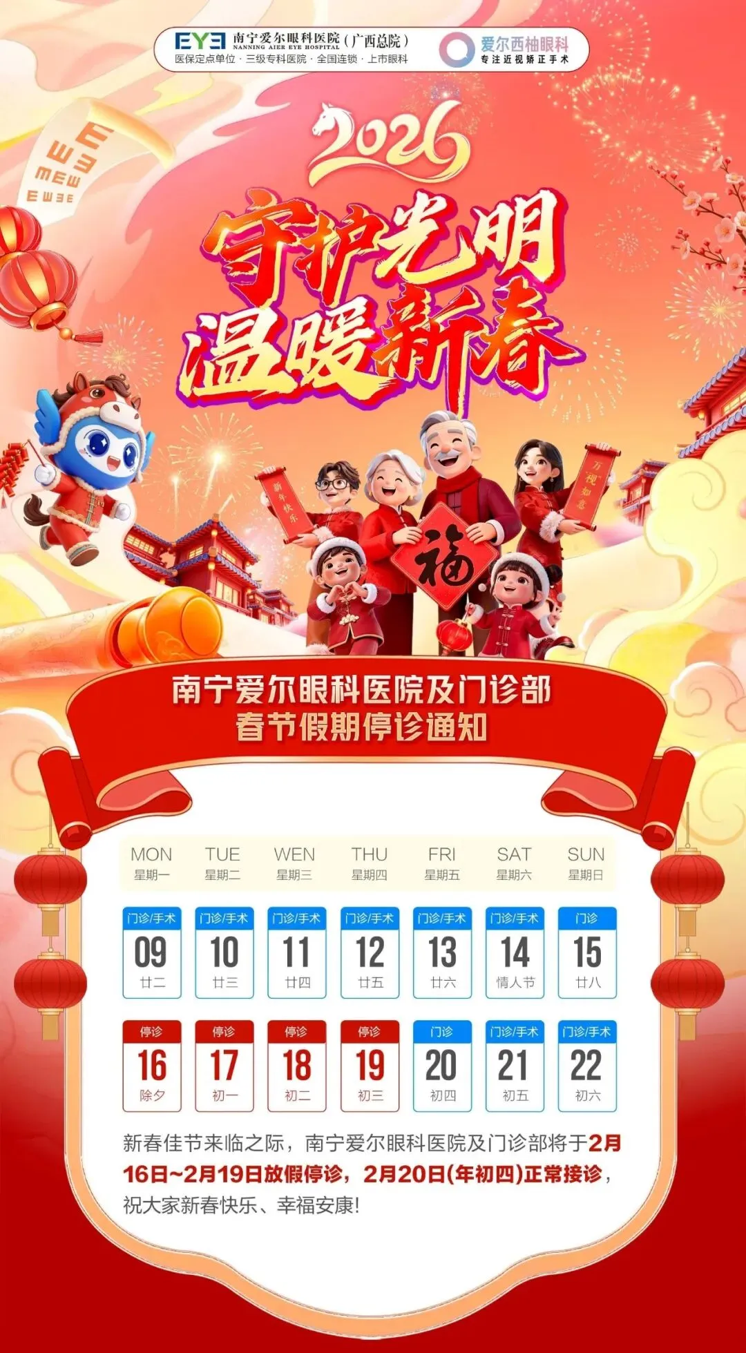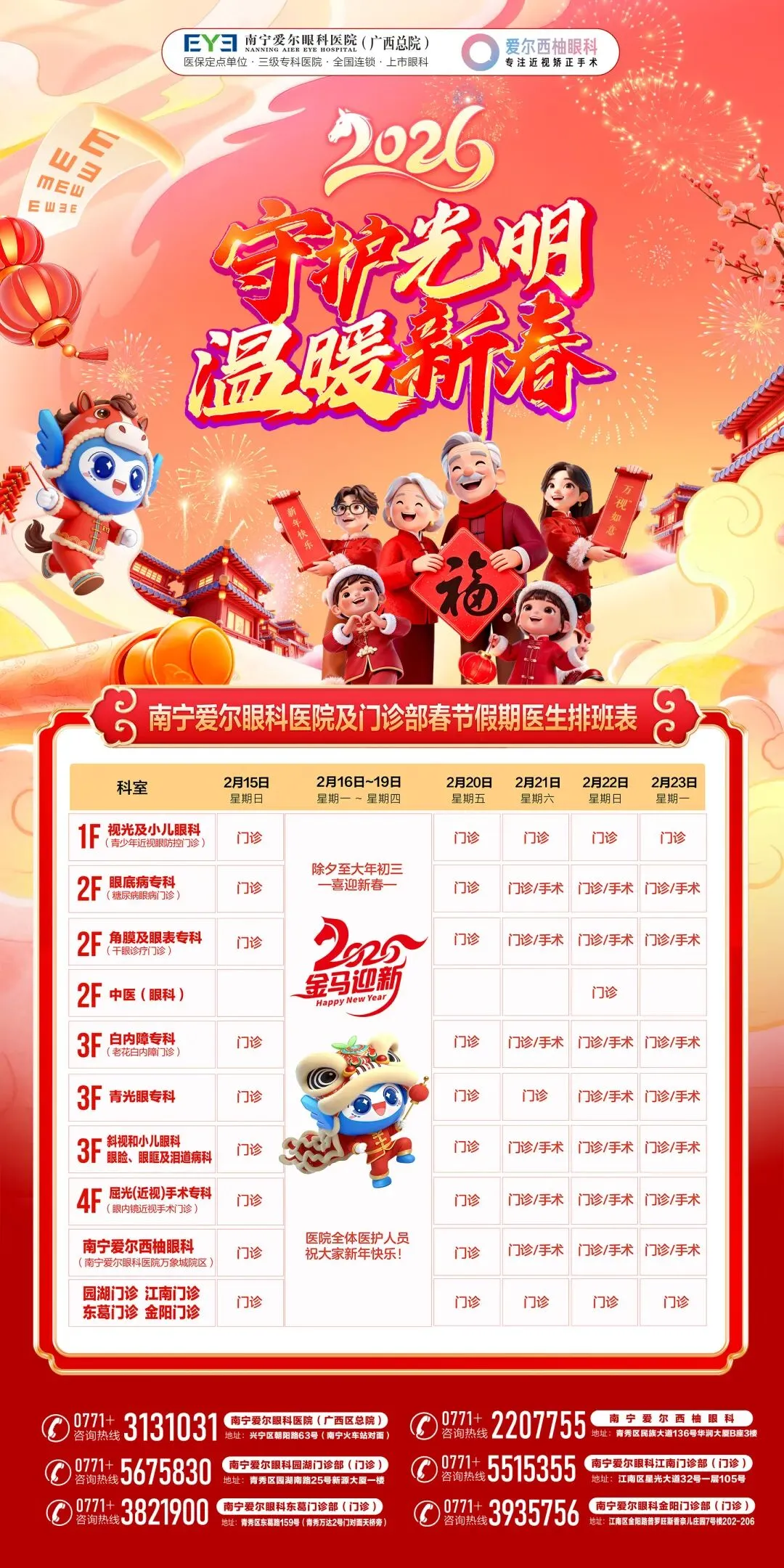 请各位市民朋友合理安排就医时间,提前祝大家新春快乐,马年大吉,阖家幸福!