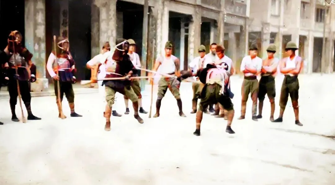 这群人在街心练剑道,护具套得鼓鼓囊囊,木刀碰在一起像敲空桶,围了一圈人看热闹,烈日下白衬衣泛出盐霜,这种表演式的训练,多半是摆给镜头的。