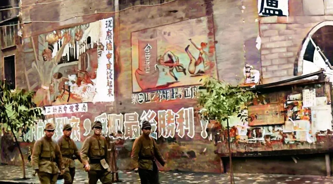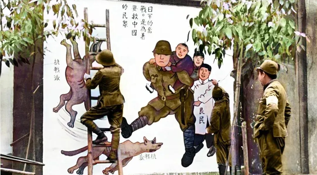 他们在墙上画亲善鬼话,我们在另一面墙上写抗战标语,笔触不一样,心气儿不一样,孩子路过会问妈妈这画什么意思,妈妈说等你长大就懂了,现在孩子再问,我会指着这些老照片说,懂这些,才知道今天的日子来得多不容易。