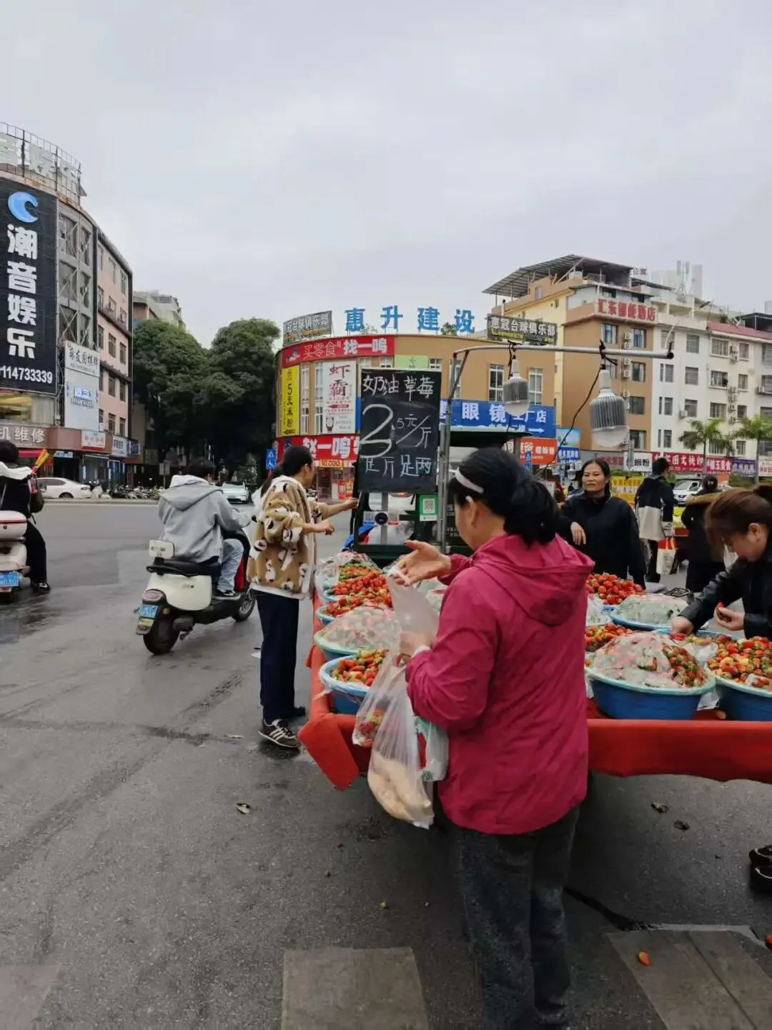 3元一碗槐花粉、5元实现酸嘢自由、10元3盒水果,最近去买草莓发现就卖3块5一斤,实在很便宜。