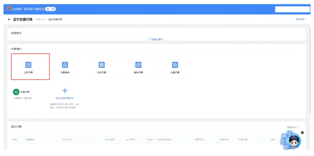 答:商家确认拥有有效数电发票票种信息后,登陆电子税务局,进入【我要办税】-【发票使用】-【蓝字发票开具】-【立即开票】,选择发票类型,填写发票相关信息即可开具发票。
