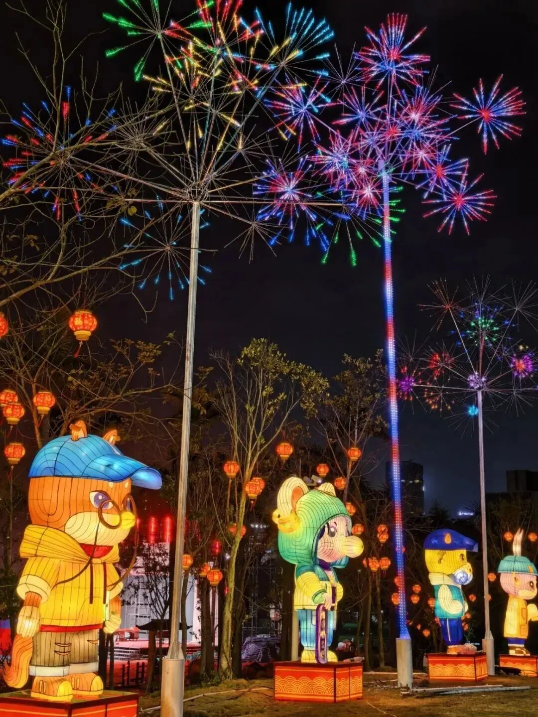夜晚的中央公园被万千灯火点亮,鎏金幻彩的凤凰灯组、凌空舒展的星辉飞马,还有五路财神、巨龙凌空等吉祥灯组,更有融入壮乡铜鼓、绣球元素的传统灯组与马年专属灯组,虚实交织、如梦如幻,演绎锦绣山河的祥瑞诗篇。