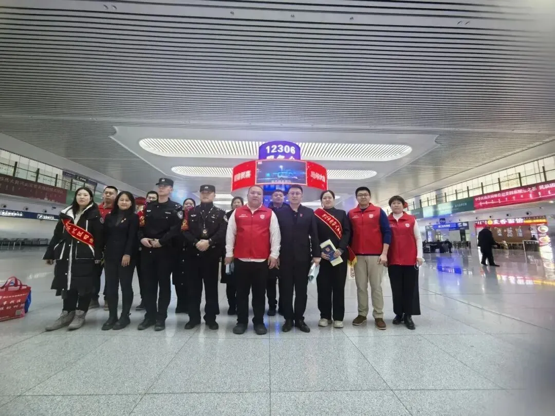 ◇2月12日,正值春运返程高峰,通辽市法律援助中心在火车站开展“法援惠民生”活动。工作人员发放《保障农民工工资支付条例》等资料,现场答疑,将法律温暖送到旅客手中。(市法律援助中心)
