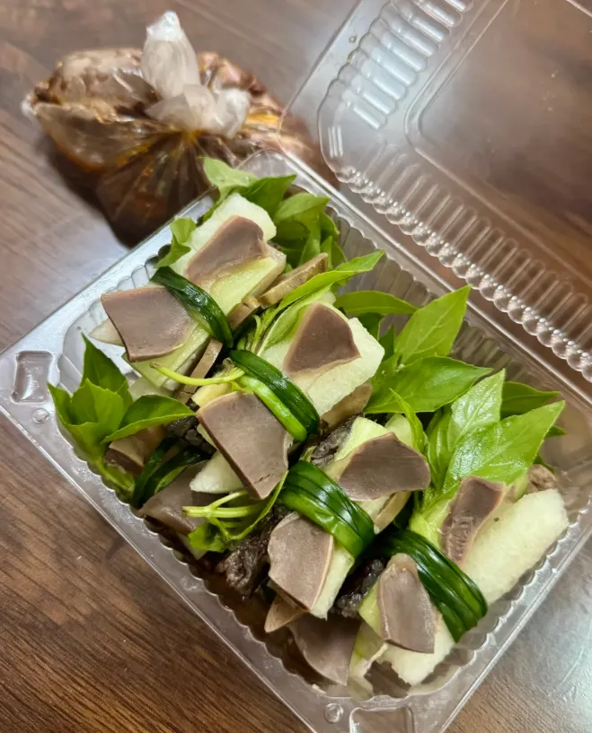 中午去宜州,尝一份簸箕饭,木簸箕盛着糯米、腊肉、酸笋和蒜苗。