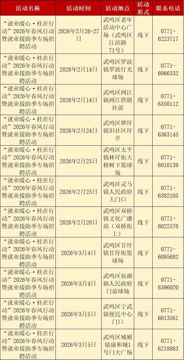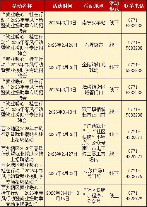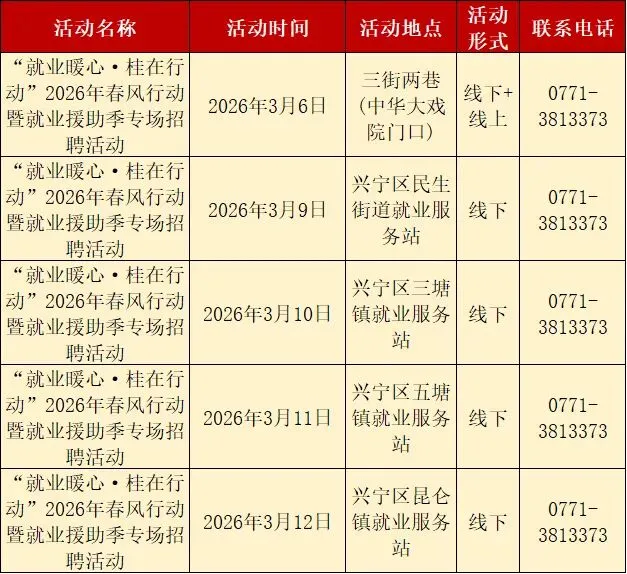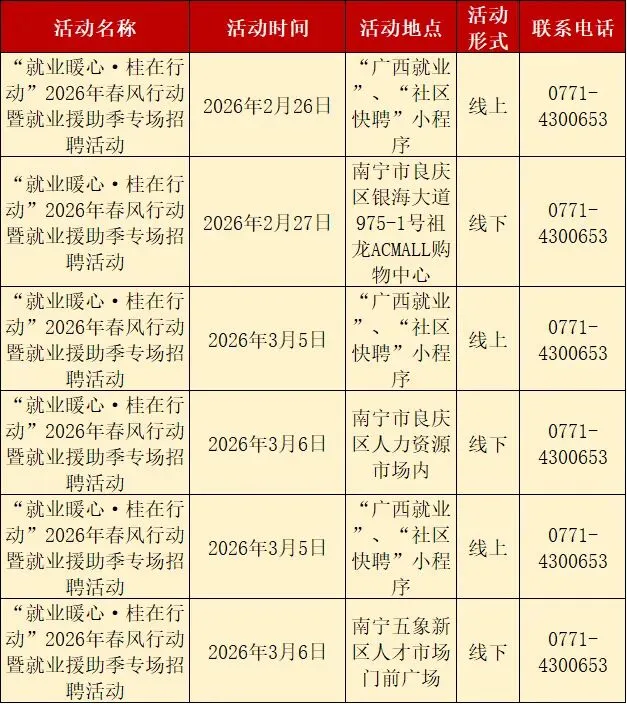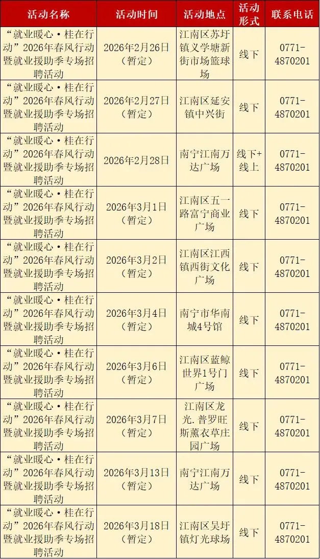 找工作?“就业暖心·桂在行动”南宁市2026年春风行动暨就业援助季招聘安排表快收好~