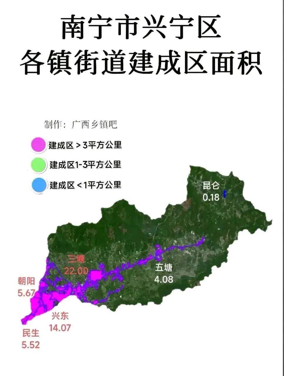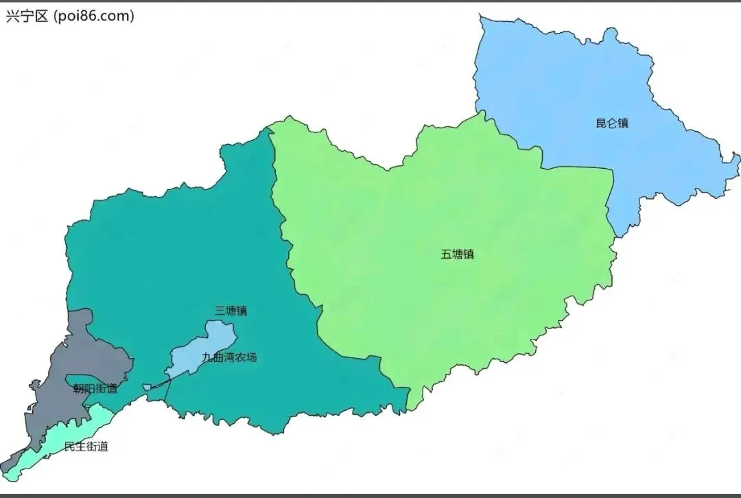 兴宁区还有3个镇,分别是三塘镇,五塘镇,昆仑镇,昆仑镇原来叫九塘乡,后面改乡为镇。