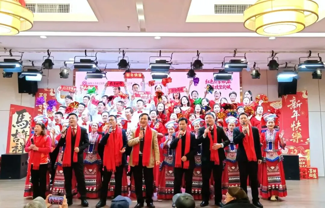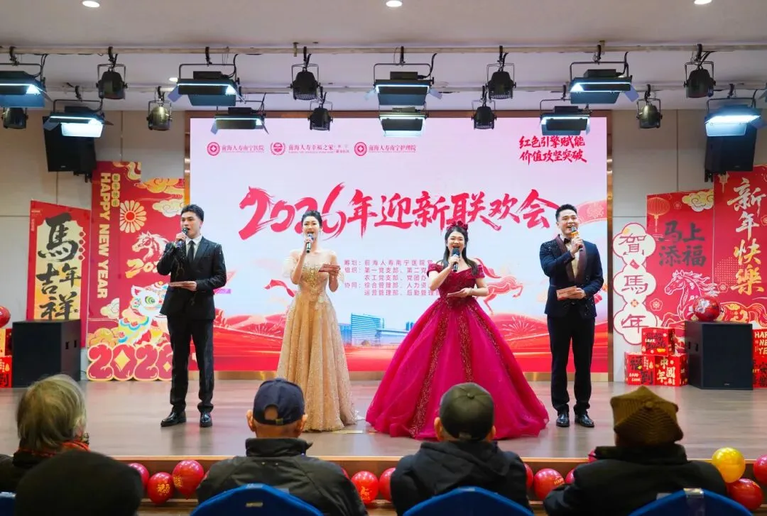 骏马奔腾迎新春,杏林春暖谱新猷。前海人寿南宁医院党委在迎接岁序更新之际,精心筹划“红色引擎赋能,价值攻坚突破”主题迎新晚会。这场新春盛会由医院党团办公室、各党支部及农工党医院支部共同组织,既是对过去一年奋斗征程的深情回望,更是对党建引领下高质量发展新篇章的豪迈宣言。
