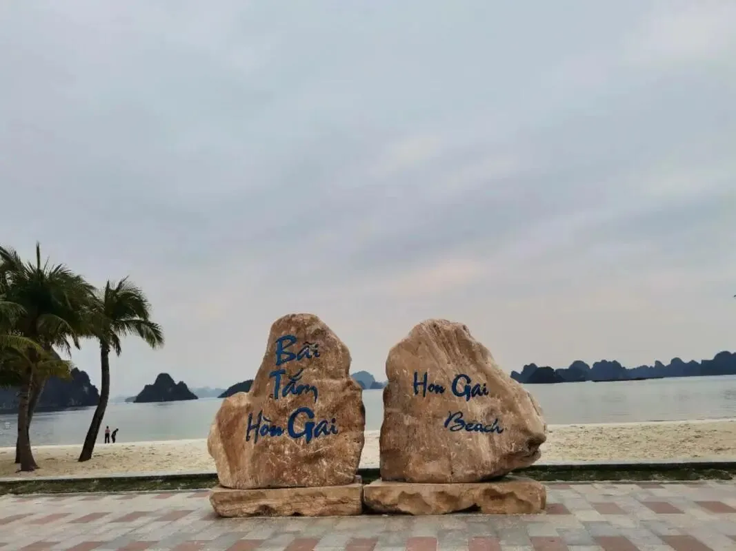 接着来到有近千米的海滩--【鸿基沙滩】,沙滩上椰树成林,沙滩细白软暖,沙滩一望无际,与下龙的喀斯特地貌结合在一起仿佛一面油画,山的安静,水的静谧,海的广阔,风的抚摸,在这里演练这各种变幻,当你踏上沙滩的这一刻,感受这大自然的安抚把身边的琐事都放下了,犹如这一片空旷的白皙,难于言表的美。经过千百年的筛炼,沙滩格外松软湿润,海面安静温柔。