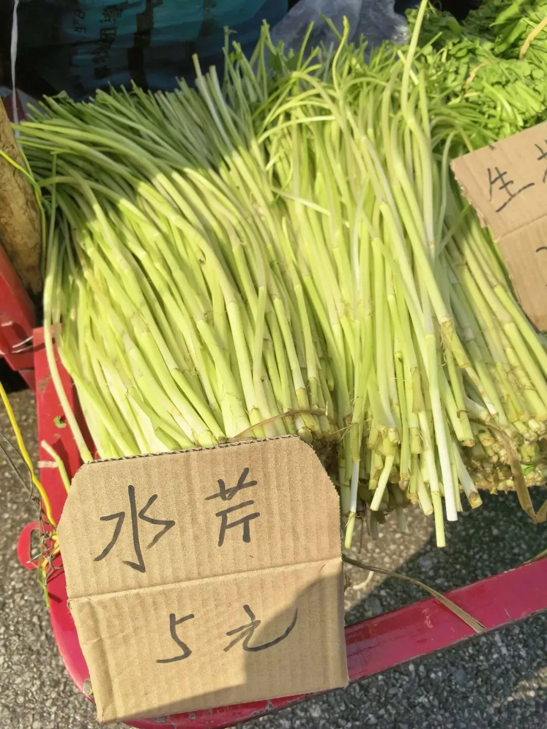 菠菜、红头蒜苗、香芹、豌豆尖儿……各种青菜都很水灵,在阳光下闪着翠绿的光泽。