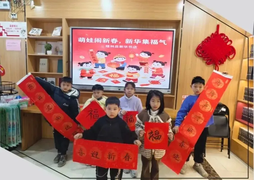 书店还在门店开展了“萌娃闹新春,新华集福气”活动,孩子们们现场执笔书写福字与春联,在笔墨创作中沉浸式体验书法艺术与传统年俗,感受浓浓年味,也在心中种下文化传承的种子。(隆林县新华书店)