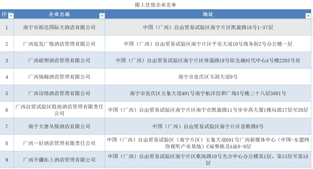 限上住宿企业名单