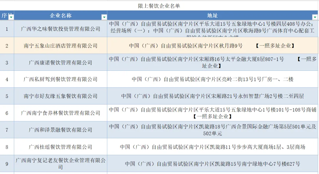 限上餐饮企业名单