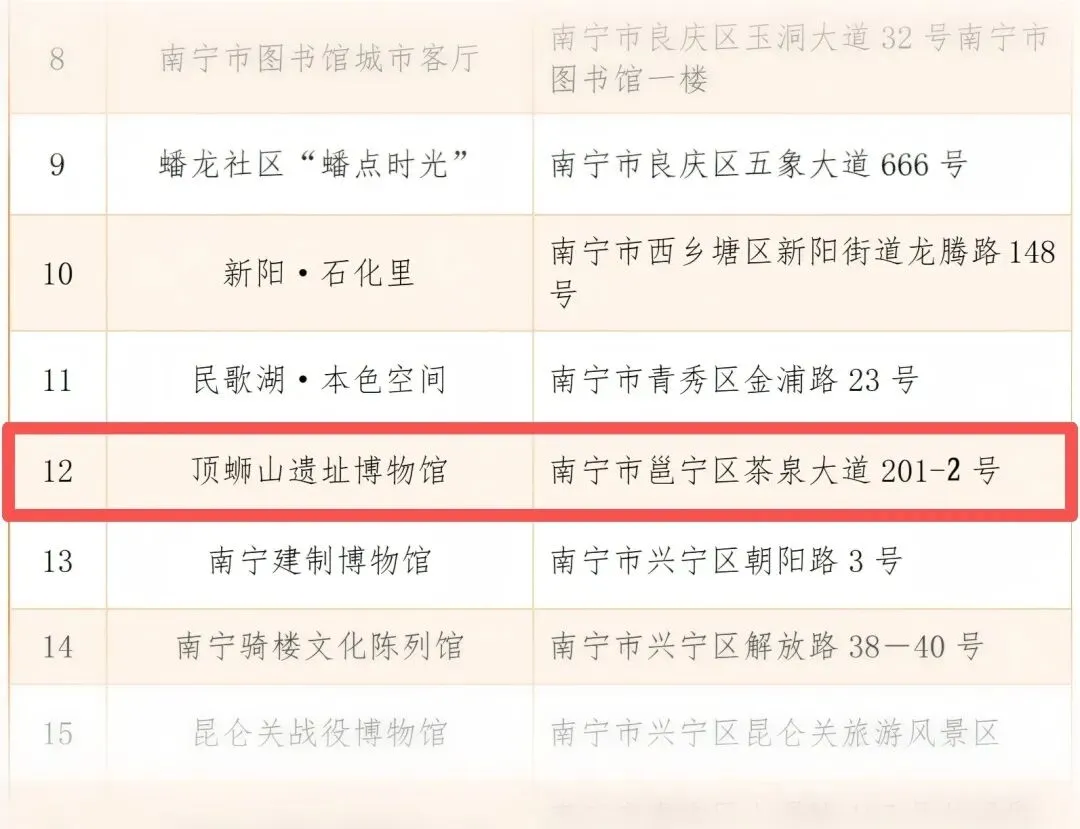 2026年2月13日,南宁市首批“小而美”公共文旅空间授牌仪式在三街两巷·人民剧院隆重举行,顶蛳山遗址博物馆等20家单位成功入选首批名单!