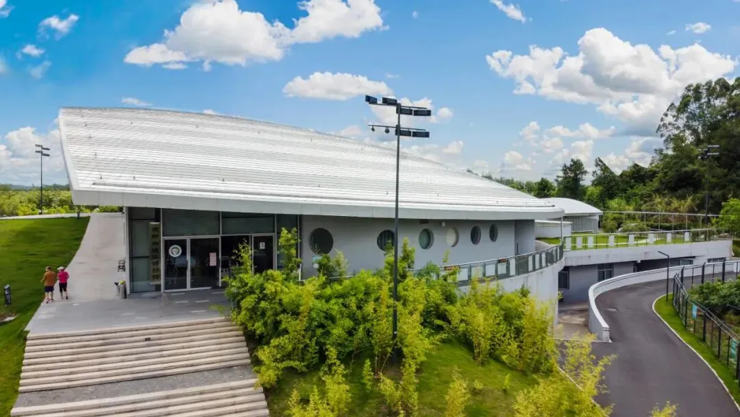 博物馆的建筑外形灵感源自贝丘文化,远处看像一枚巨大的“蚌壳”。屋顶装饰了蚌壳的条纹肌理,建筑前设置了观景平台。