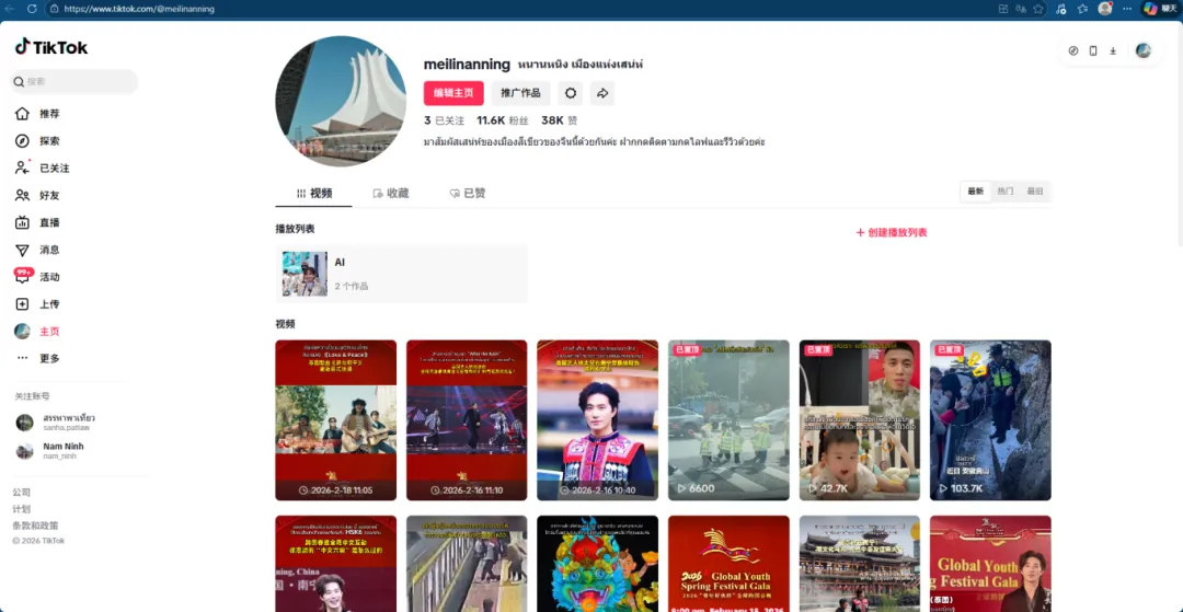 重点打造“绿城南宁”矩阵垂类内容品牌。在Instagram、TikTok等海外新媒体平台开设“绿城南宁”相关话题,共发布英语、越南语、泰语多语种内容超100条,总浏览量超500万。率先在Instagram和TikTok海外社交平台开设“nam_ninh”越南语账号,在Facebook、TikTok、Youtube、Instagram等国际主流社交平台开设泰语账号矩阵,打开面向越南、泰国精准传播的新渠道。