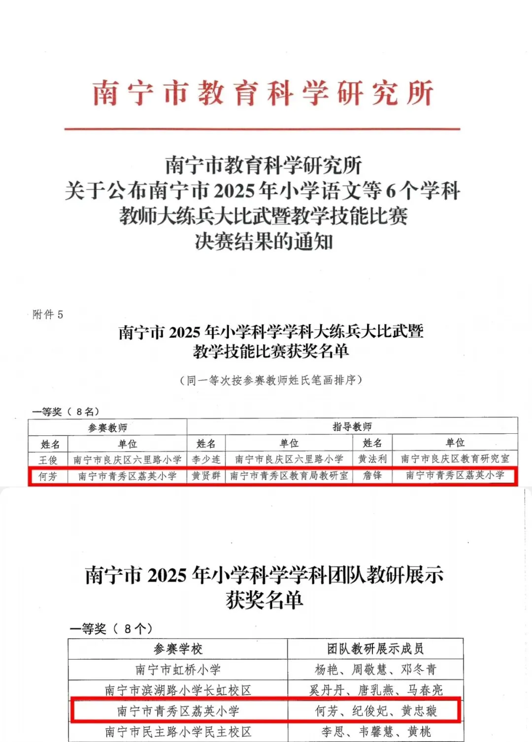 捷报传来!在南宁市2025年小学科学学科大练兵大比武暨教学技能比赛中,我校何芳老师荣获个人一等奖;同时,由何芳、纪俊妃、黄忠璇老师组成的我校科学教研团队,同步斩获团队一等奖!