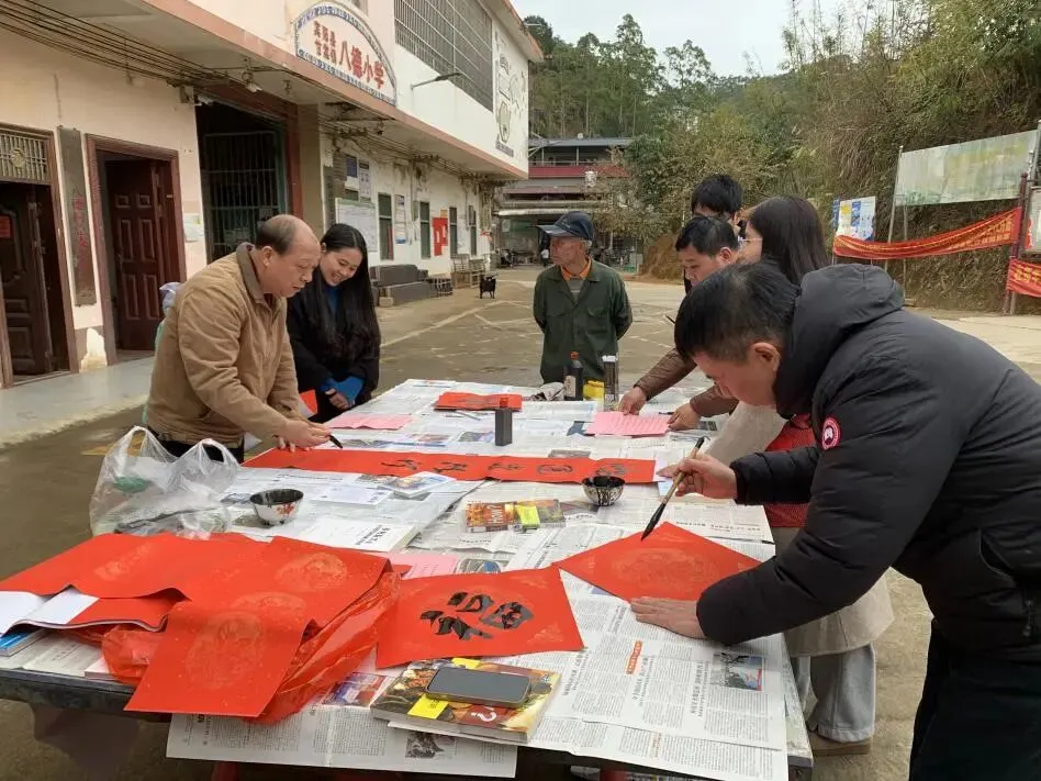 2月11日,市方志办将这份墨香与祝福带到了宾阳县甘棠镇八德村。在村党群服务中心前,由办工会组织的书法小分队摆开书案,现场为村民书写春联,把满载着对乡村振兴美好愿景和村民幸福生活祝愿的春联送到乡亲们手中。