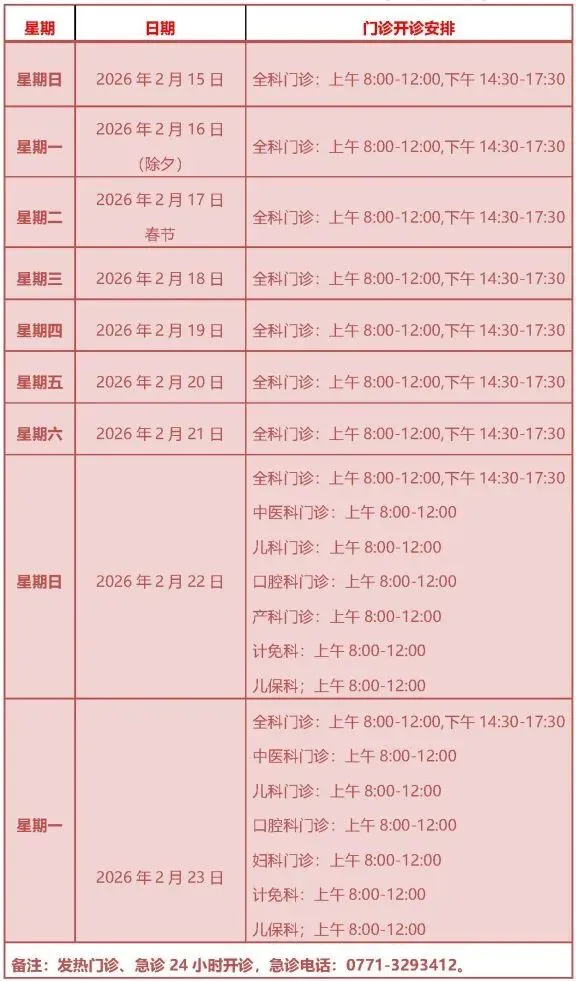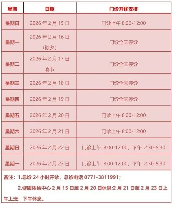 健康守护不停歇!南宁市第八人民医院2026年春节假期门急诊安排