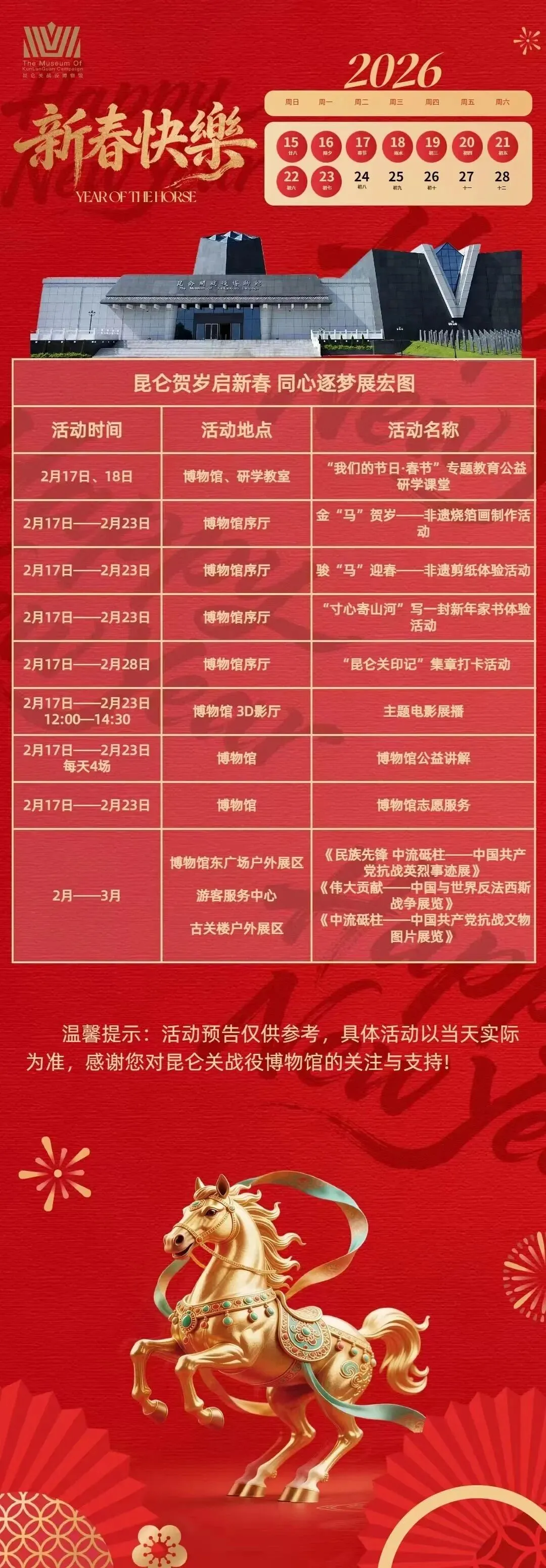 活动时间:2月17日—2月23日(初一至初七)9:30—17:00