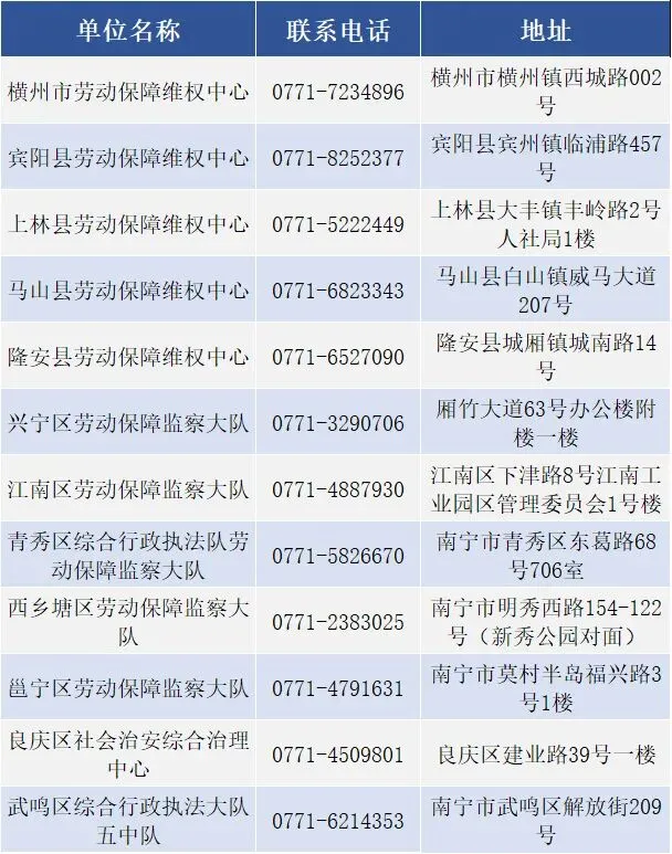 (二)南宁市劳动保障监察维权投诉网点