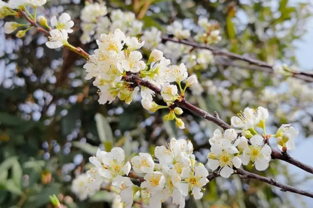 看素白繁花染遍枝头
