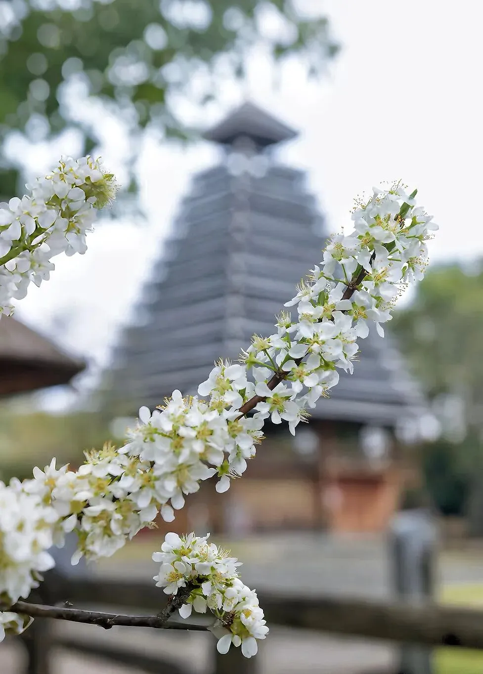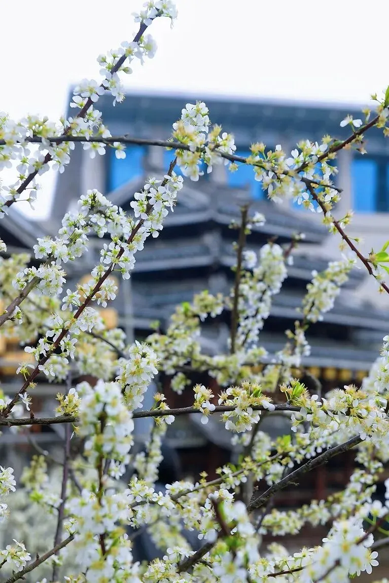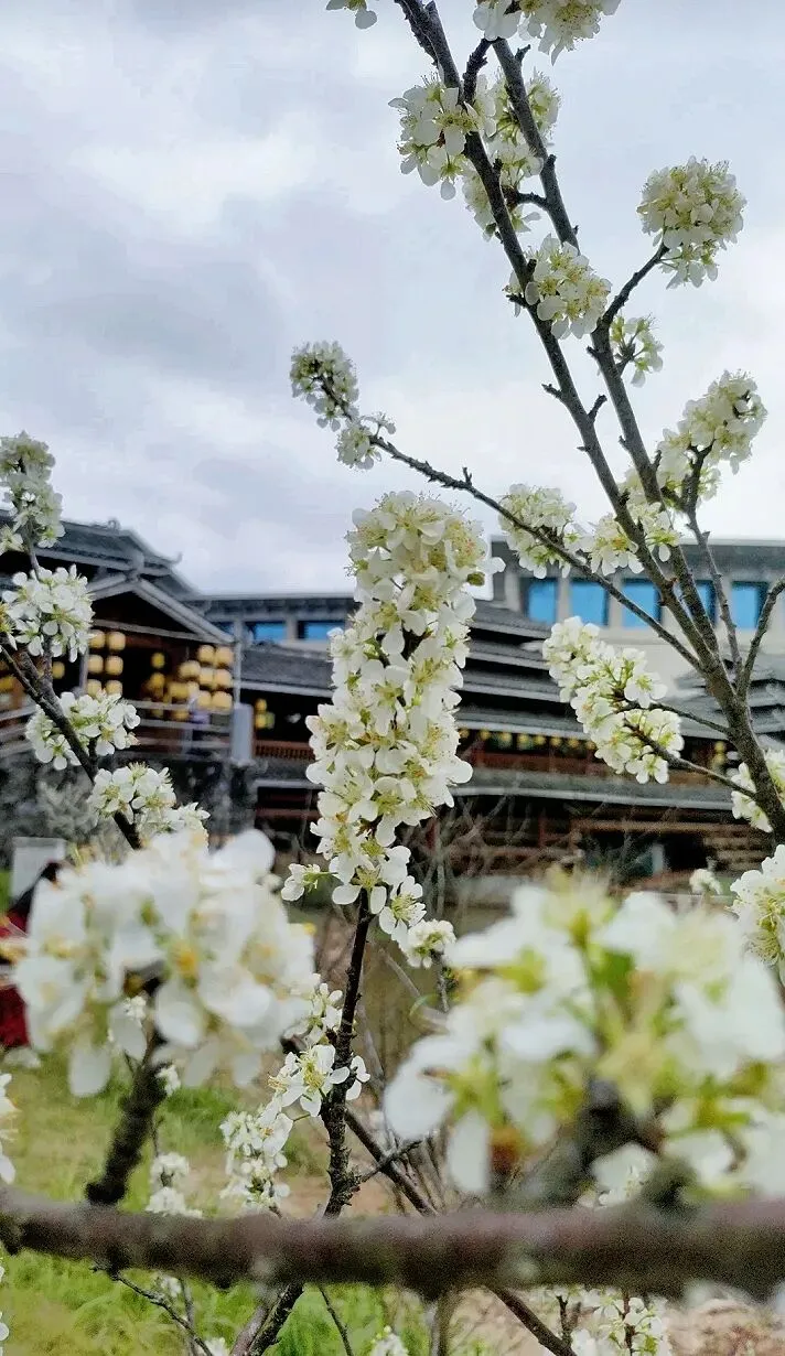 青瓦木楼间,繁花缀满枝头
