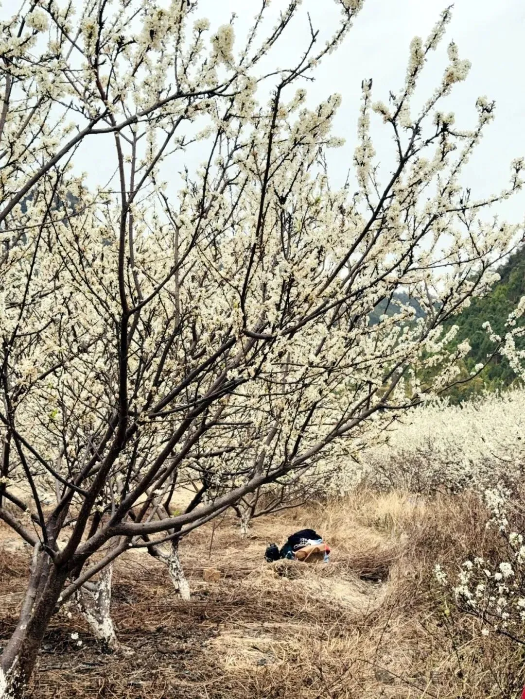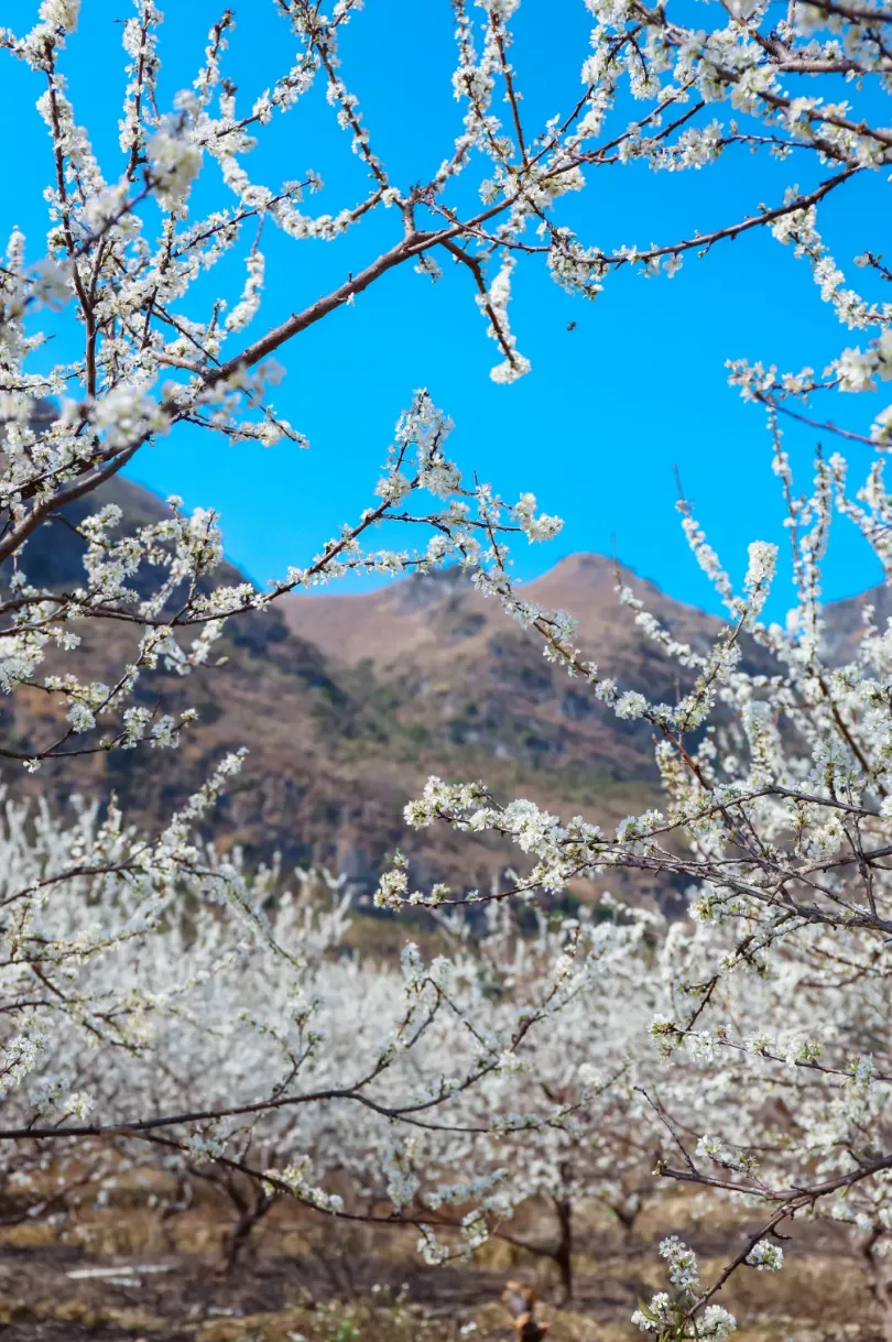 洁白的李花与远处群山