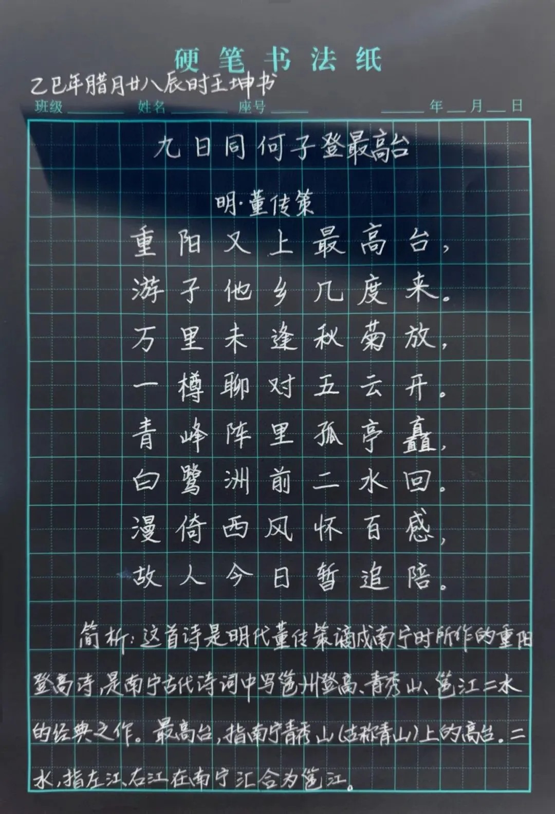 早晨反复寻找关于南宁的古诗词,最喜欢一首明代董传策所作的《九日同何子登最高台》。