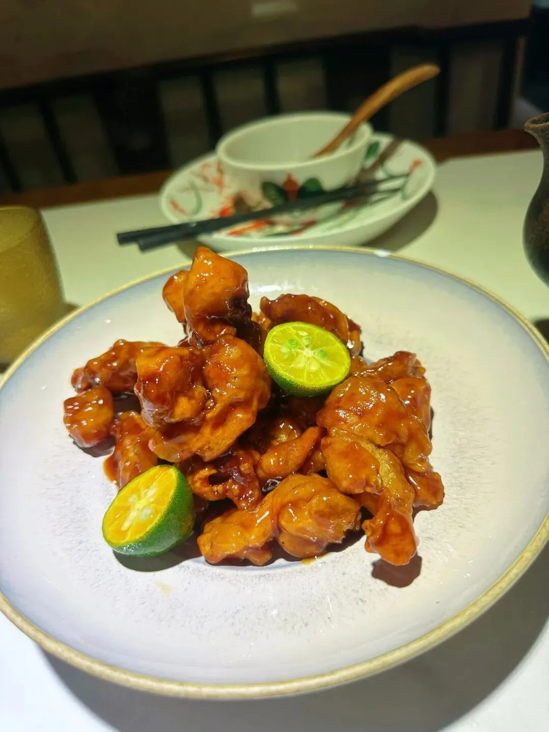 他家的不一样,里脊肉炸得外酥里嫩,咬开里面的肉还带着汁水,裹的酱汁是那种带着青柠清香的酸甜口,一点都不齁。