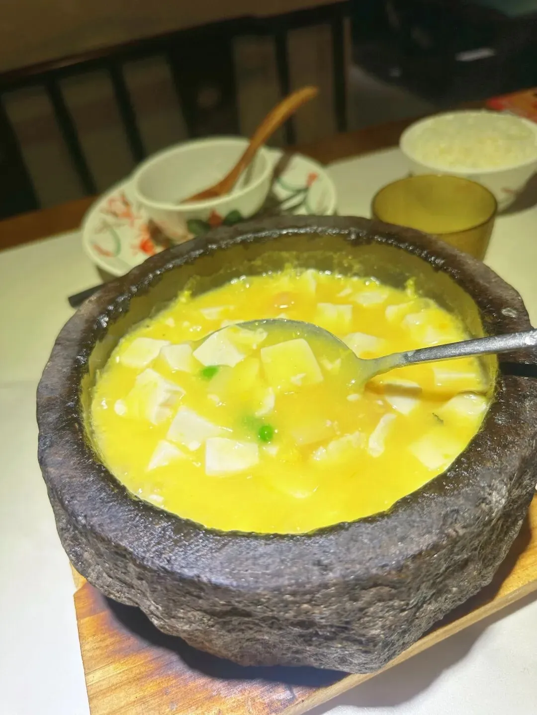 最让我惊艳的是那道石锅海鲜豆腐,端上来的时候还在咕嘟咕嘟冒泡,石锅的温度把豆腐炖得嫩得像豆花,入口即化。