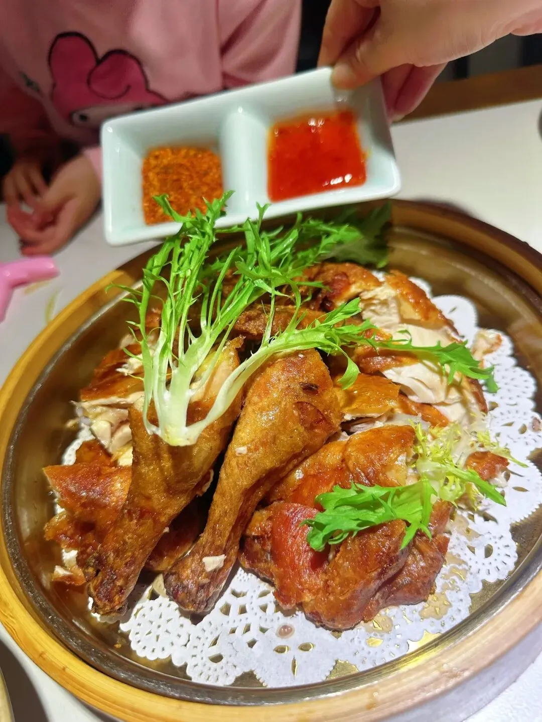 整只鸡分量很足,我们四个人吃都没吃完,打包回去晚上加热了,外皮还是脆的,一点都不影响口感。